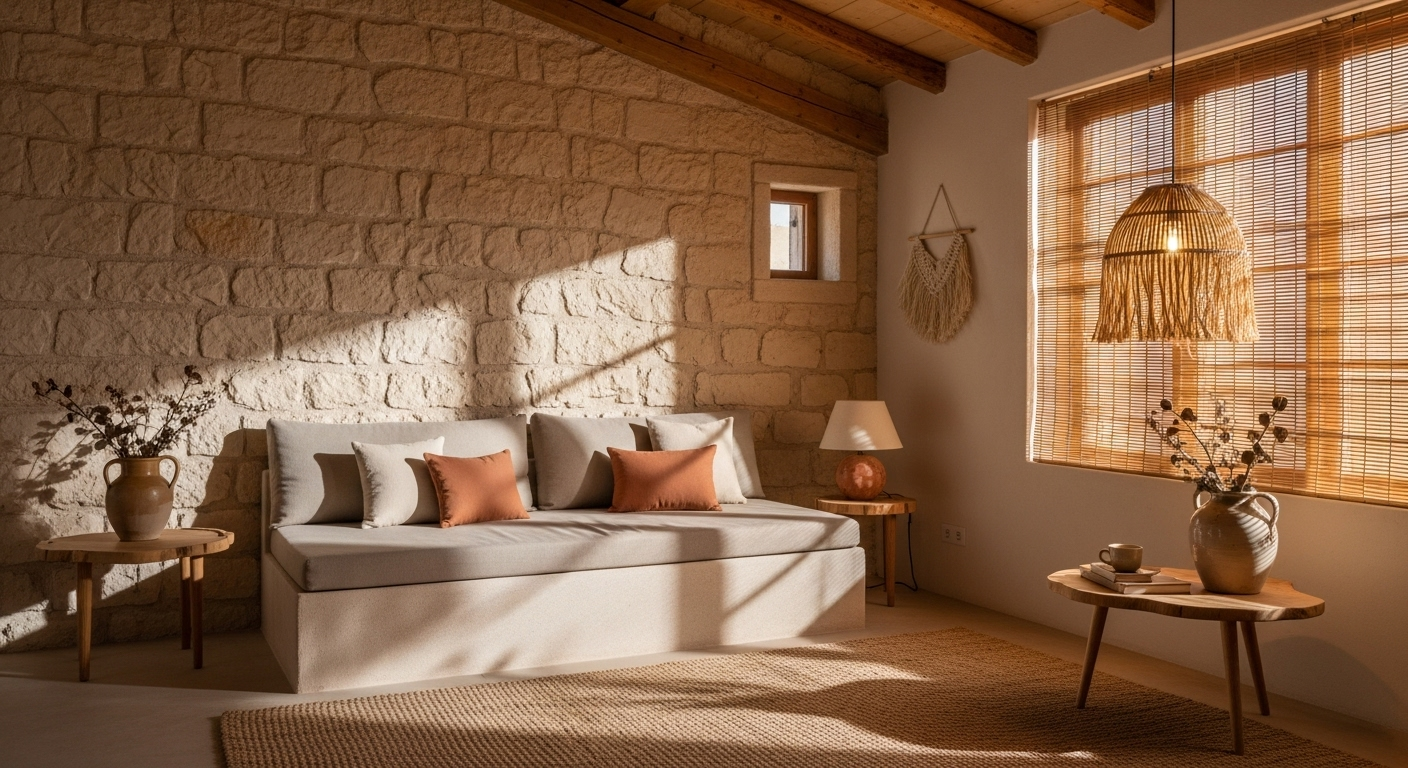 Por supuesto. Su base neutra y su conexión con lo natural lo hacen increíblemente versátil. Funciona a la perfección con el minimalismo del estilo nórdico, creando ambientes Japandi o Scanditerranean muy serenos. También se puede fusionar con toques industriales (detalles en metal negro, ladrillo visto) para un look más urbano, o con el estilo boho para potenciar su lado más relajado y viajero con más textiles y plantas.