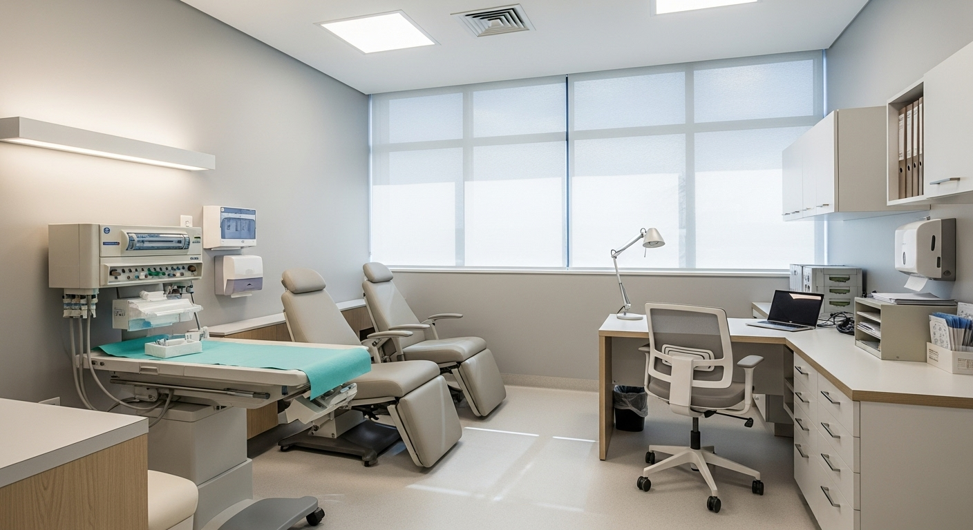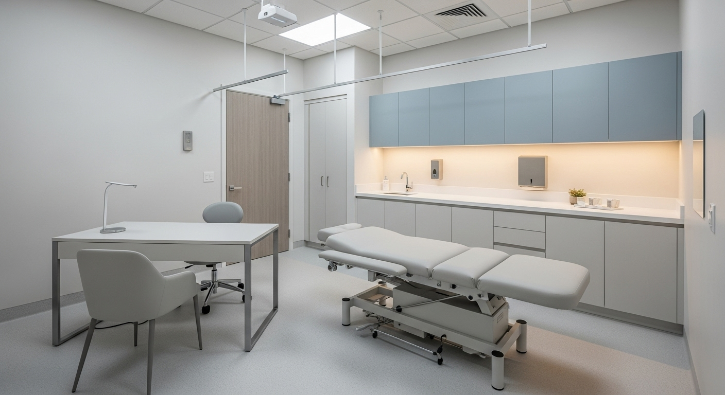 - **Iluminación Natural y Artificial:** La luz es vital. Prioriza la entrada de luz natural siempre que sea posible. Complementa con una buena iluminación artificial que evite sombras y permita realizar exploraciones y tareas administrativas sin esfuerzo visual. La calidad de la iluminación afecta directamente la **precisión diagnóstica** y el bienestar del paciente.