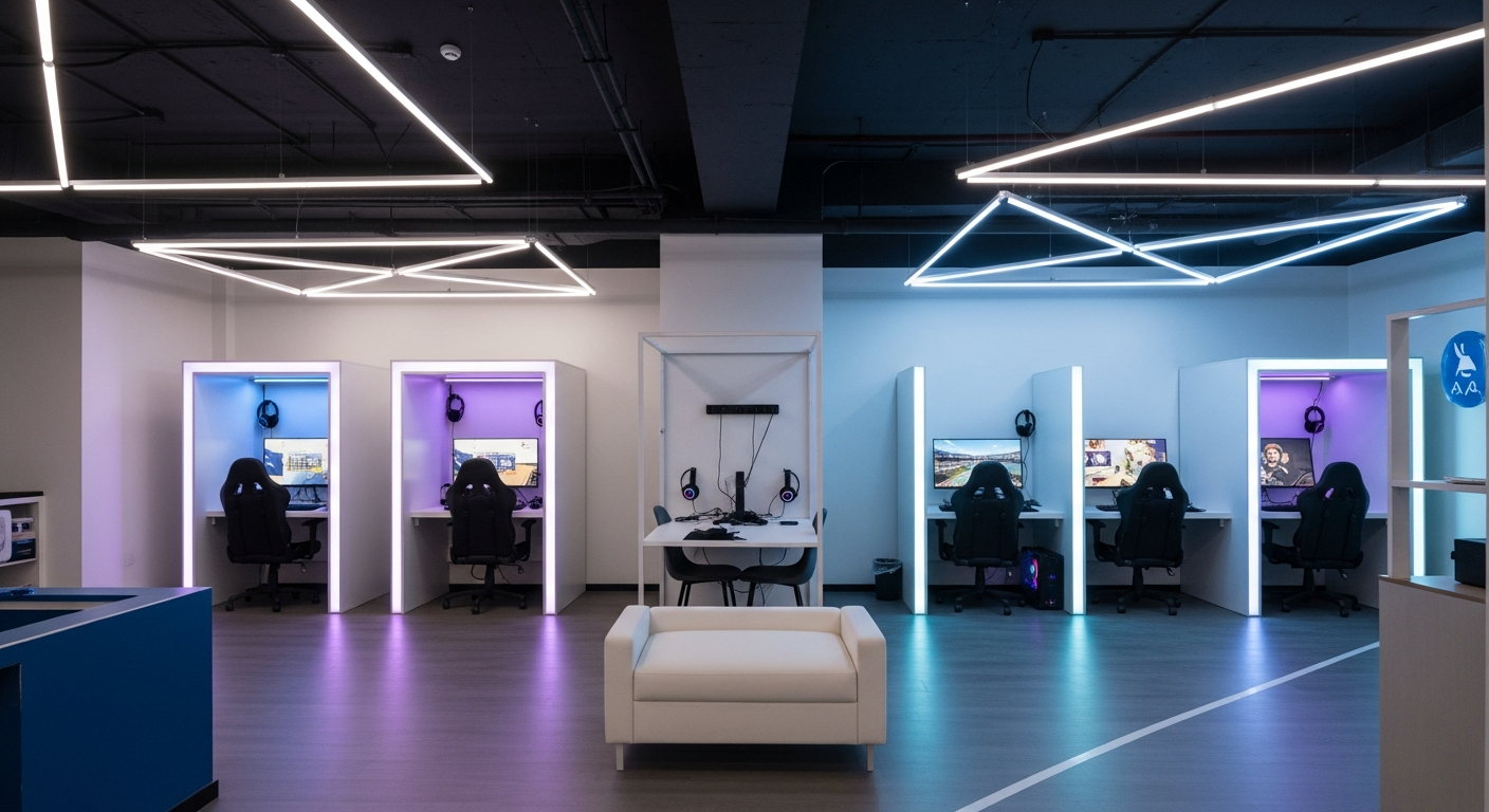 Un centro de Realidad Virtual (RV) o de Gaming no es un local comercial cualquiera. La naturaleza de la actividad impone unas condiciones muy específicas. Por un lado, la RV requiere que los usuarios se muevan con libertad, a menudo con la visión completamente bloqueada por las gafas. Esto convierte la distribución del espacio en un factor de seguridad fundamental. Por otro, un centro de gaming es un gran consumidor de energía. Múltiples ordenadores de alto rendimiento, consolas, monitores, sistemas de refrigeración e iluminación funcionando simultáneamente suponen una carga eléctrica enorme.